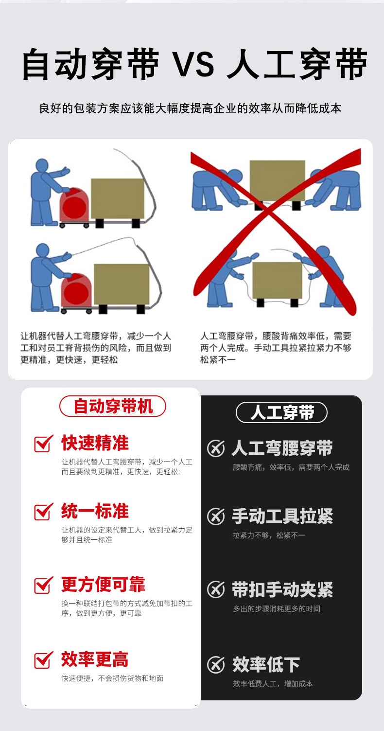 - 帶倉容量不足:如果帶倉容量過小,在連續(xù)作業(yè)時(shí),需要頻繁更換打包帶卷,不僅影響工作效率,還可能在更換過程中導(dǎo)致打包帶安裝不規(guī)范,進(jìn)而引發(fā)卡帶或送帶不暢。可根據(jù)實(shí)際工作需求,選擇合適帶倉容量的穿帶機(jī),或者對(duì)現(xiàn)有的帶倉進(jìn)行改造,增加其容量。