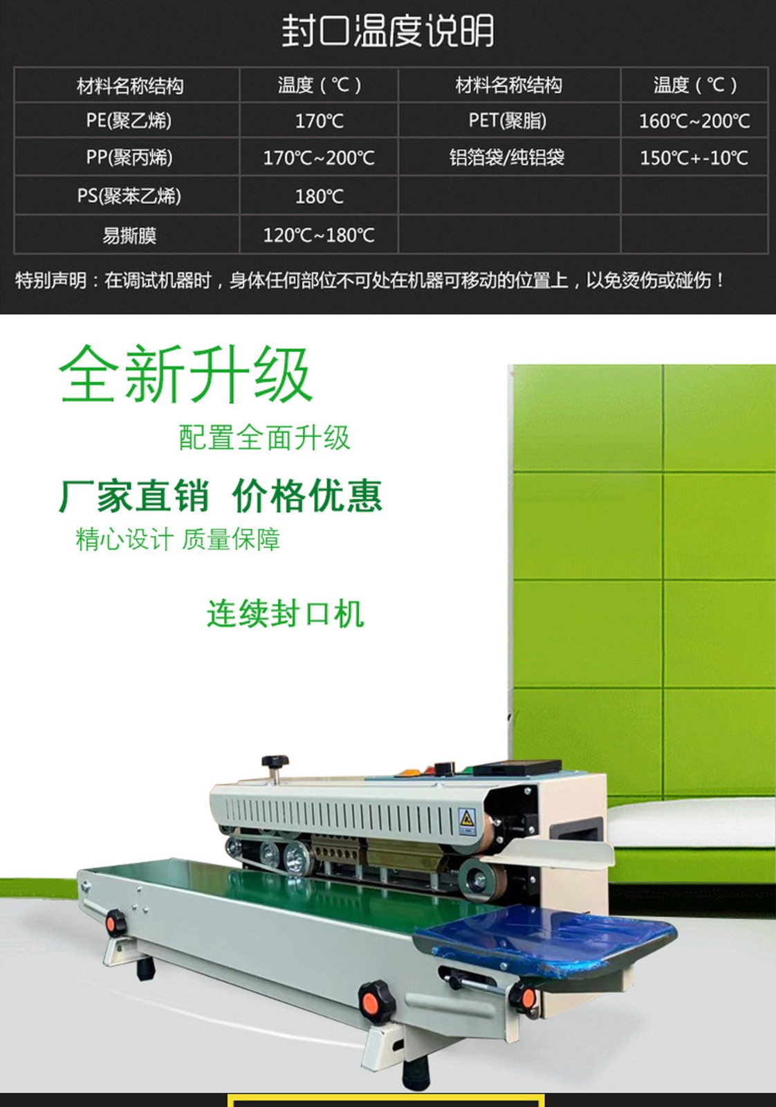 可定制化:部分連續(xù)封口機(jī)可以根據(jù)用戶(hù)的不同需求進(jìn)行定制,如調(diào)整封口寬度、長(zhǎng)度、印字內(nèi)容等,以滿(mǎn)足各種特殊的包裝要求。