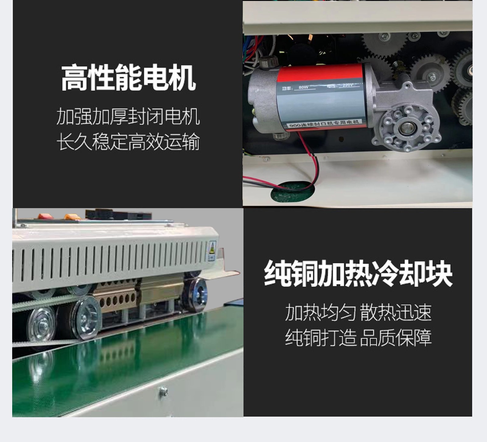 連續(xù)封口效率高:采用自動(dòng)輸送和連續(xù)加熱封口方式,無(wú)需間歇操作,能持續(xù)不斷地對(duì)包裝袋進(jìn)行封口,大大提高了生產(chǎn)效率,適用于大規(guī)模的生產(chǎn)包裝作業(yè)。