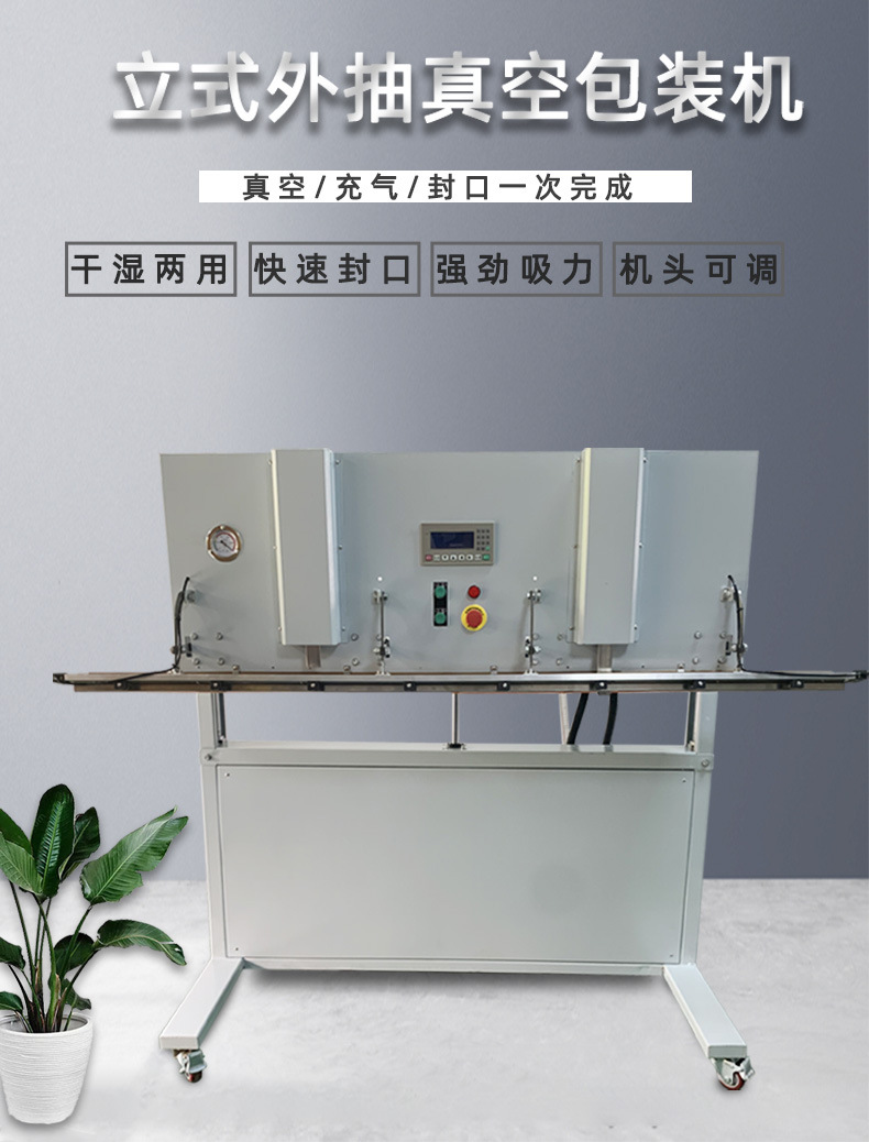 可升降立式外抽真空包裝機配備可升降機構,升降范圍可根據實際包裝要求進行自由調節