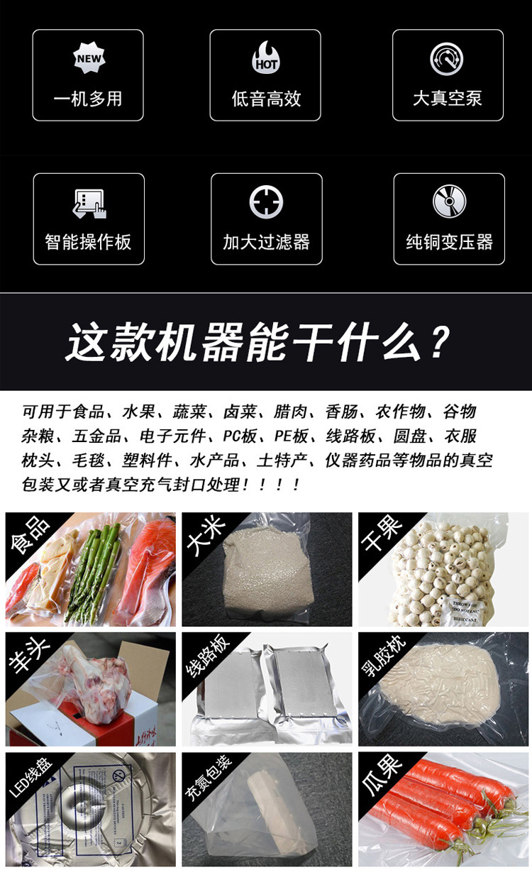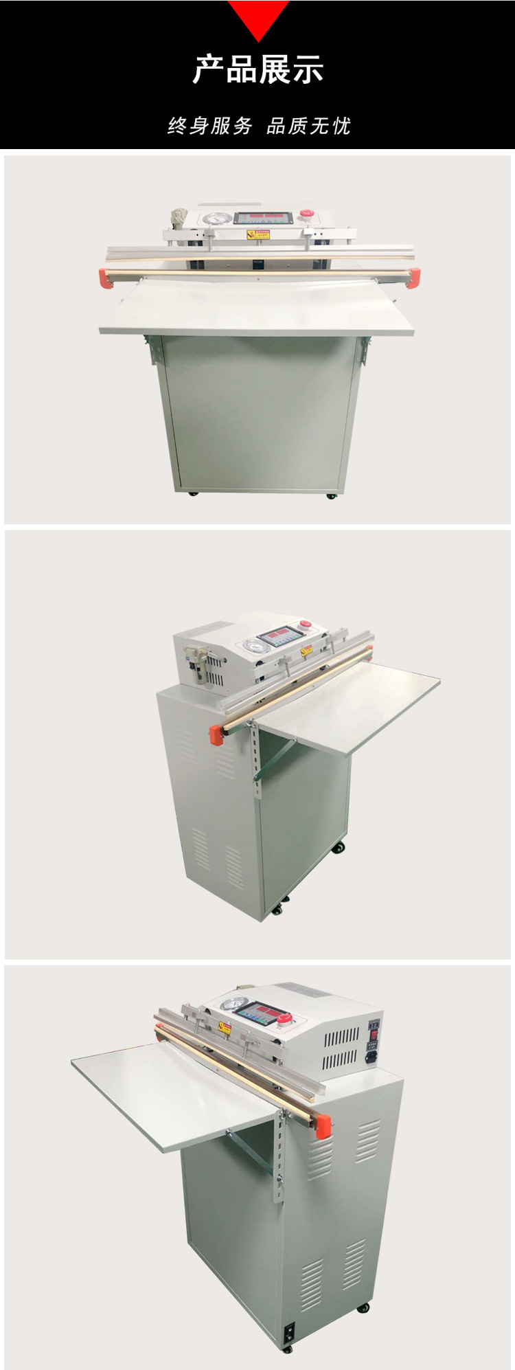 電動外抽真空包裝封口機封口采用氣壓式,壓力大,封口干凈、平整、牢固,徹底改變傳統包裝封口不牢的現象,可有效防止包裝內容物泄漏