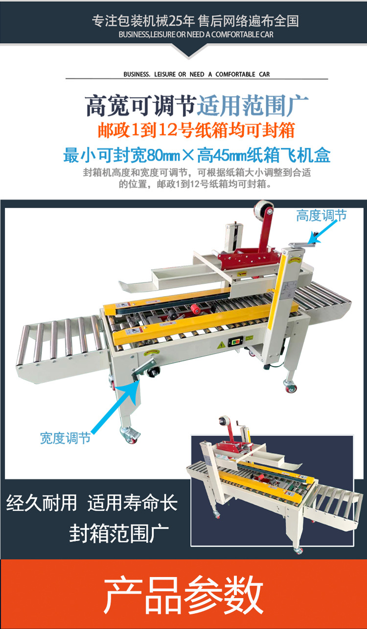 - 精準(zhǔn)高效:封箱機(jī)通過精確的機(jī)械設(shè)計(jì)和控制系統(tǒng),能夠準(zhǔn)確地完成每個(gè)封箱動作,避免了人工操作可能出現(xiàn)的失誤和偏差,從而保證了封箱的質(zhì)量和效率。