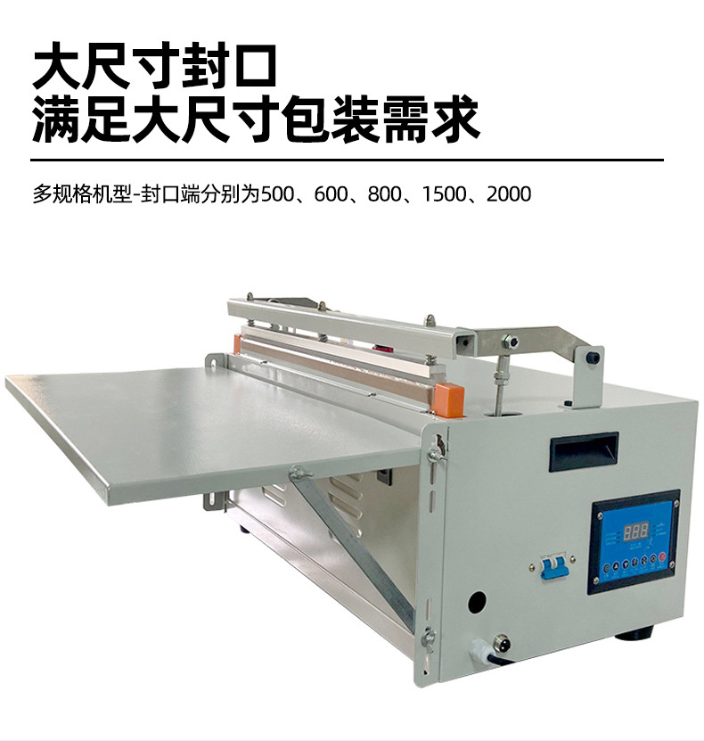 • 封口尺寸:封口的長度和寬度越大,每次封口所需的時間就越長,從而影響工作效率。例如,對大尺寸的包裝袋進行封口,封口機的壓頭需要覆蓋更大的面積,加熱和施壓的時間會相應增加。