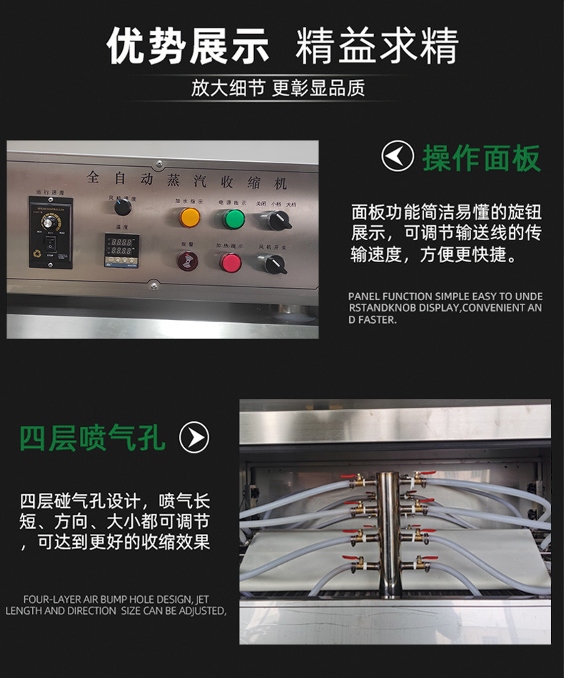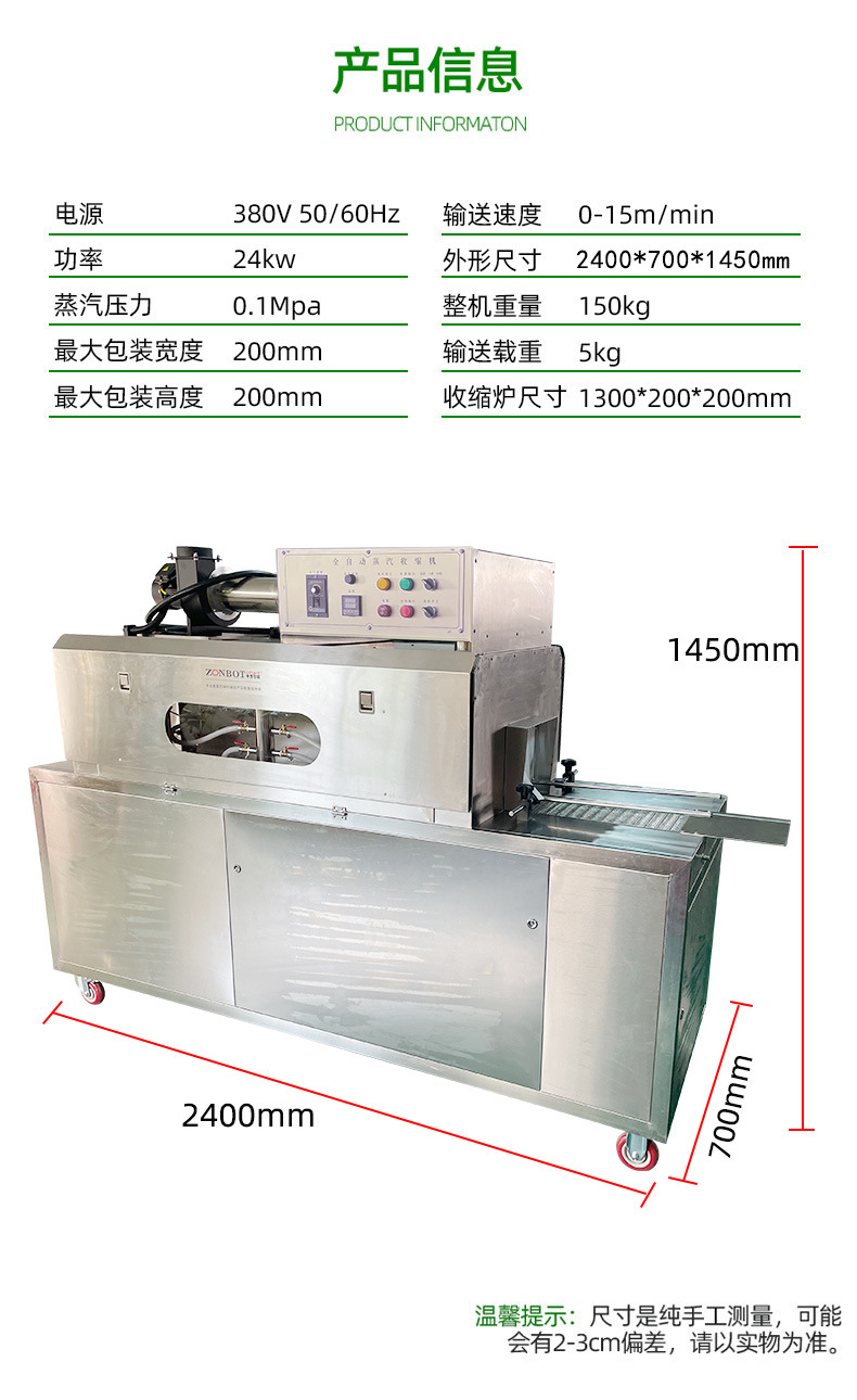 - 收縮均勻:蒸汽能夠均勻地分布在產(chǎn)品表面,確保包裝材料收縮均勻,不會出現(xiàn)局部過緊或過松的情況。