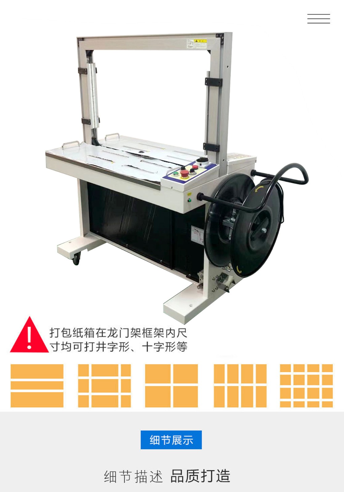 全自動打包機在現代包裝領域中發揮著重要作用。 一、結構組成 全自動打包機通常由以下幾個主要部分組成: 送帶系統:負責將打包帶準確地輸送到打包位置。 拉緊裝置:對打包帶進行拉緊,確保打包的牢固性。 熱合裝置:通過加熱將打包帶的接頭處融合在一起。 控制系統:對整個打包過程進行精確控制,包括送帶長度、拉緊力度、熱合時間等參數的設置。 機身框架:為各個部件提供安裝和支撐。 二、優勢亮點 高度自動化:能夠自動完成整個打包過程,無需人工干預,大大提高了生產效率。 精準控制:控制系統可以精確調節各個環節的參數,保證打包