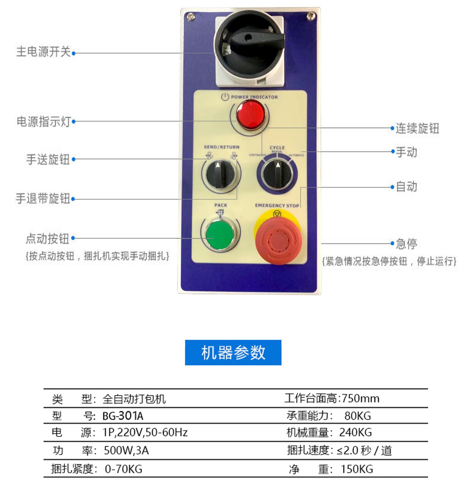 3. 安全操作:在使用全自動打包機時,要嚴格遵守操作規程,避免發生安全事故。特別是要注意防止手部被夾傷等危險。
