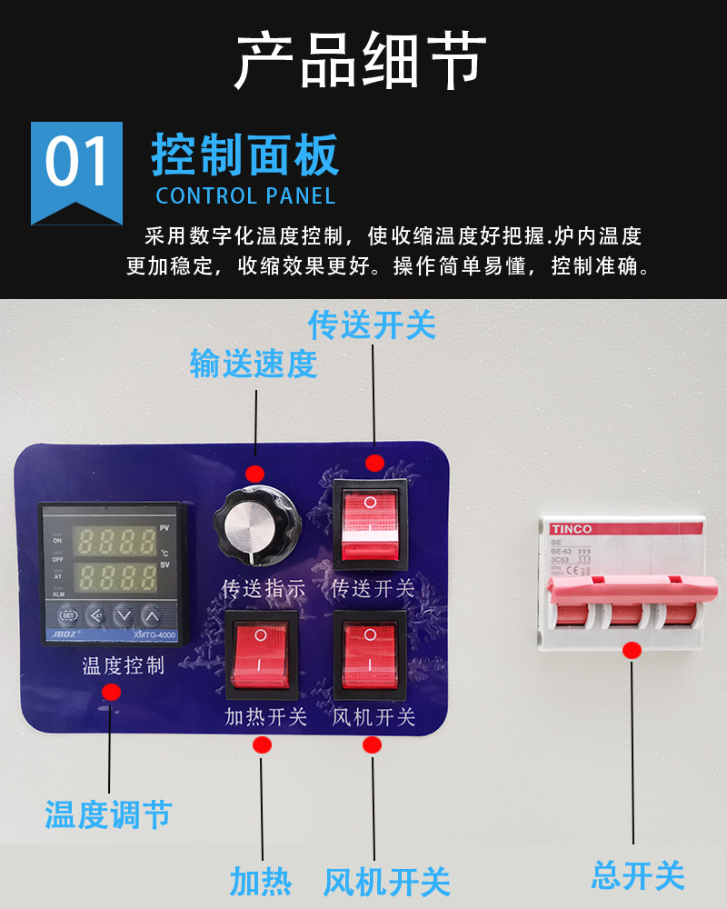 - 輸送帶:負責將待包裝物品平穩地輸送通過各個工作區域,如套膜區、加熱區等。輸送帶的速度通常是可調節的,以便適應不同的包裝速度要求。