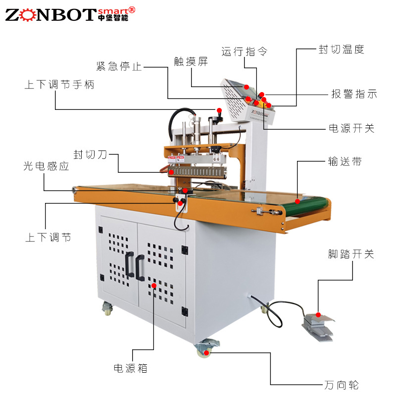 5. 控制系統:負責對整個連續式封切機的運行進行全面控制,包括啟動、停止、調節輸送帶速度、設定封切溫度、控制薄膜張力等操作。操作人員可以通過控制面板方便地對各項參數進行設置和調整,同時,一些先進的控制系統還具備故障診斷和報警功能,當設備出現異常情況時,能及時提醒操作人員進行處理,保障設備的正常運行。