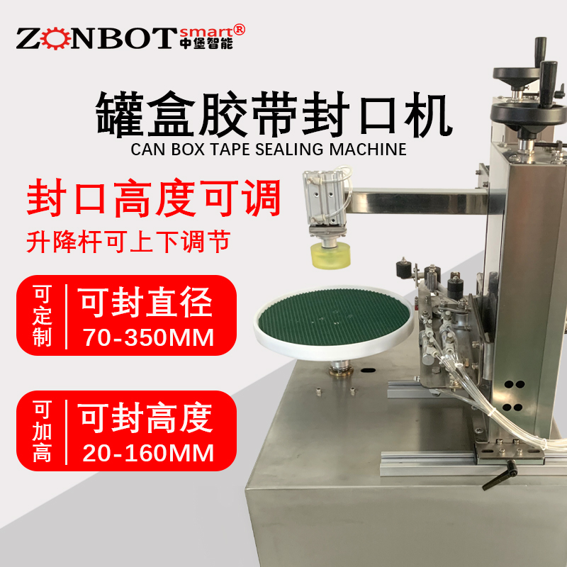 • 膠帶貼合:接著,壓帶輪開始動作,將膠帶平整地貼合在罐盒的開口邊緣。壓帶輪的壓力是可以調節的,操作人員可以根據罐盒的材質(如金屬罐、塑料罐)和膠帶的類型(如普通膠帶、防偽膠帶)來調整合適的壓力,以確保膠帶能夠緊密地貼合在罐盒上,而不會出現褶皺或縫隙。