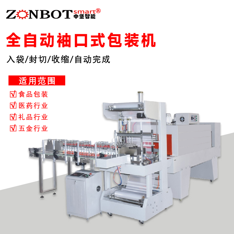 全自動袖口式包裝機是一款集自動化、高效性與精準度于一體的先進包裝設備,在眾多行業的產品包裝流程中發揮關鍵作用。 一、工作原理 它依托先進的機械設計與控制系統協同運作。首先,包裝材料,通常是成卷的塑料薄膜,從放卷裝置平穩送出,經一系列導向輥拉伸展開呈筒狀。此時,待包裝產品由輸送帶按照預設節奏精準推送至已成型的包裝筒內。隨后,機器通過機械抓手或折疊裝置對筒狀包裝材料的上下兩端進行巧妙折疊,形成類似 “袖口” 的形狀,再利用熱封技術,使加熱元件將折疊部分的薄膜熔化并黏合,完成封口,最終輸出包裝好的成品。整個過程