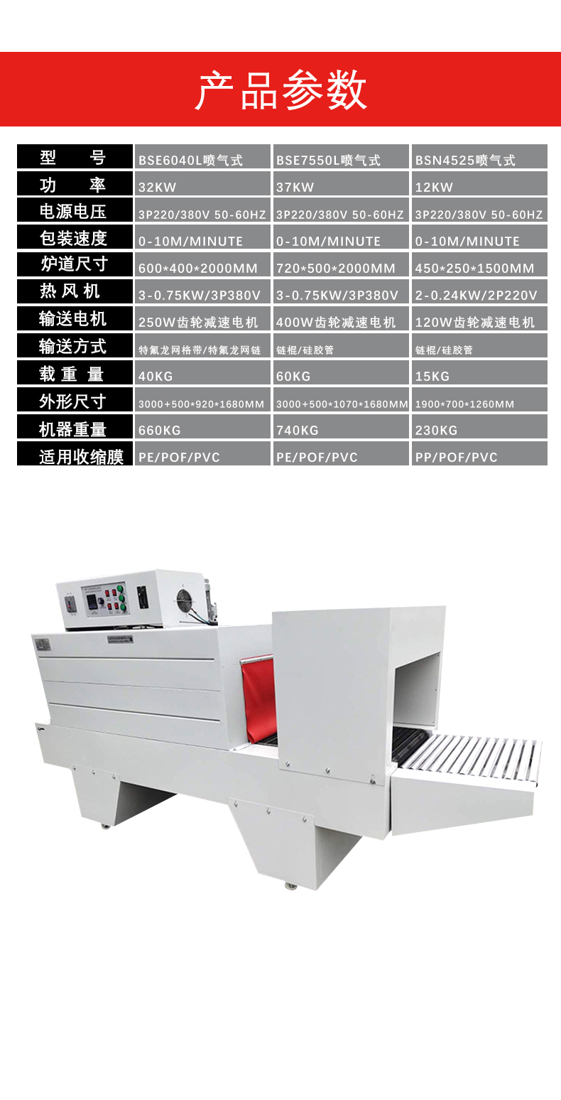 • 功率:功率大小與加熱能力和設(shè)備的生產(chǎn)效率有關(guān)。功率范圍一般在 5 - 50 千瓦之間,具體取決于熱收縮機(jī)的尺寸、加熱通道的長度和加熱溫度等因素。大功率的設(shè)備能夠更快地將空氣加熱到所需溫度,適用于大型生產(chǎn)線或?qū)Πb速度要求較高的場合。