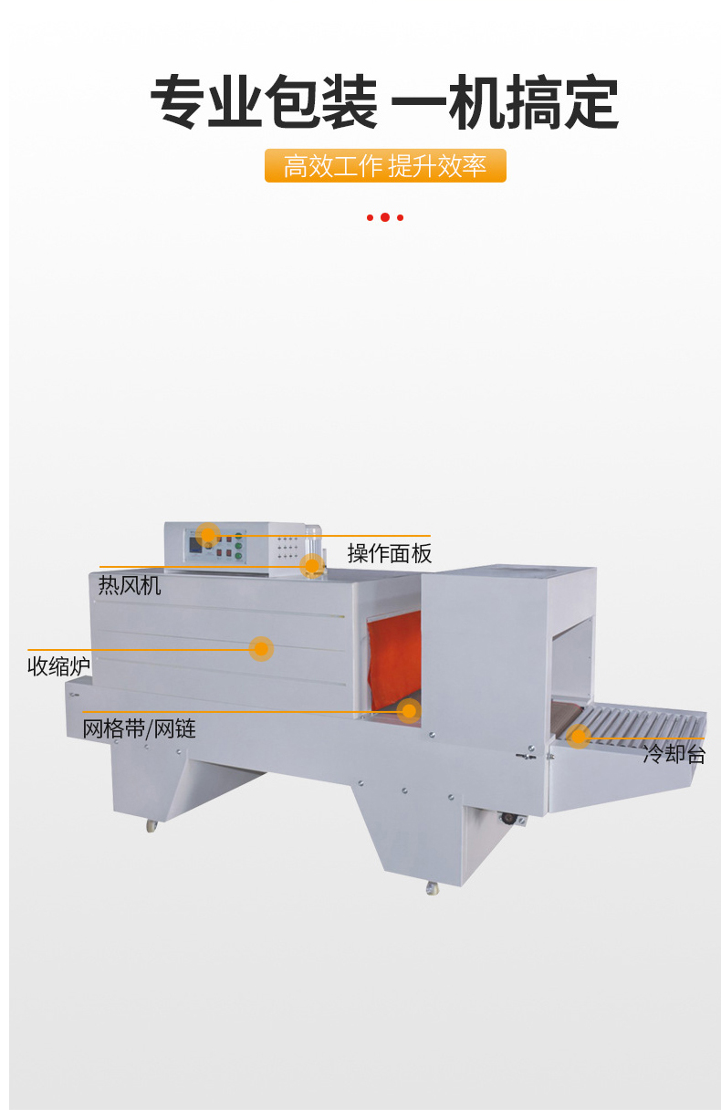 • 產(chǎn)品放置與包裝:將用熱收縮薄膜包裹好的產(chǎn)品放在輸送帶上,注意產(chǎn)品之間要保持一定的間距,避免在收縮過程中相互粘連。啟動(dòng)輸送帶,將產(chǎn)品勻速地輸送進(jìn)加熱通道。在輸送過程中,要確保產(chǎn)品位于輸送帶的中心位置,以保證熱空氣能夠均勻地作用于薄膜。