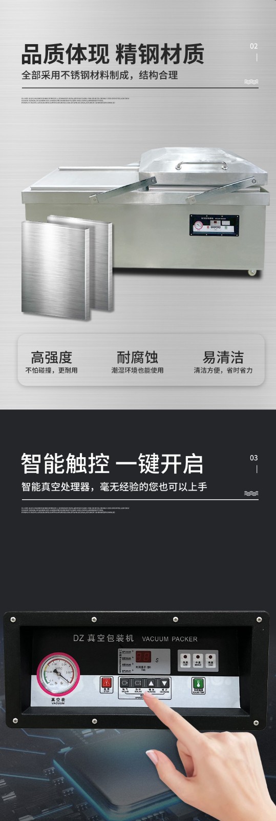 - 優(yōu)質材質:通常外殼采用 304 不銹鋼制作,強度高、耐腐蝕、不易破損,且符合食品衛(wèi)生要求。真空室采用高密度材料制作的 V 形密封條,保證了設備的密封性、耐壓性和耐磨性7。