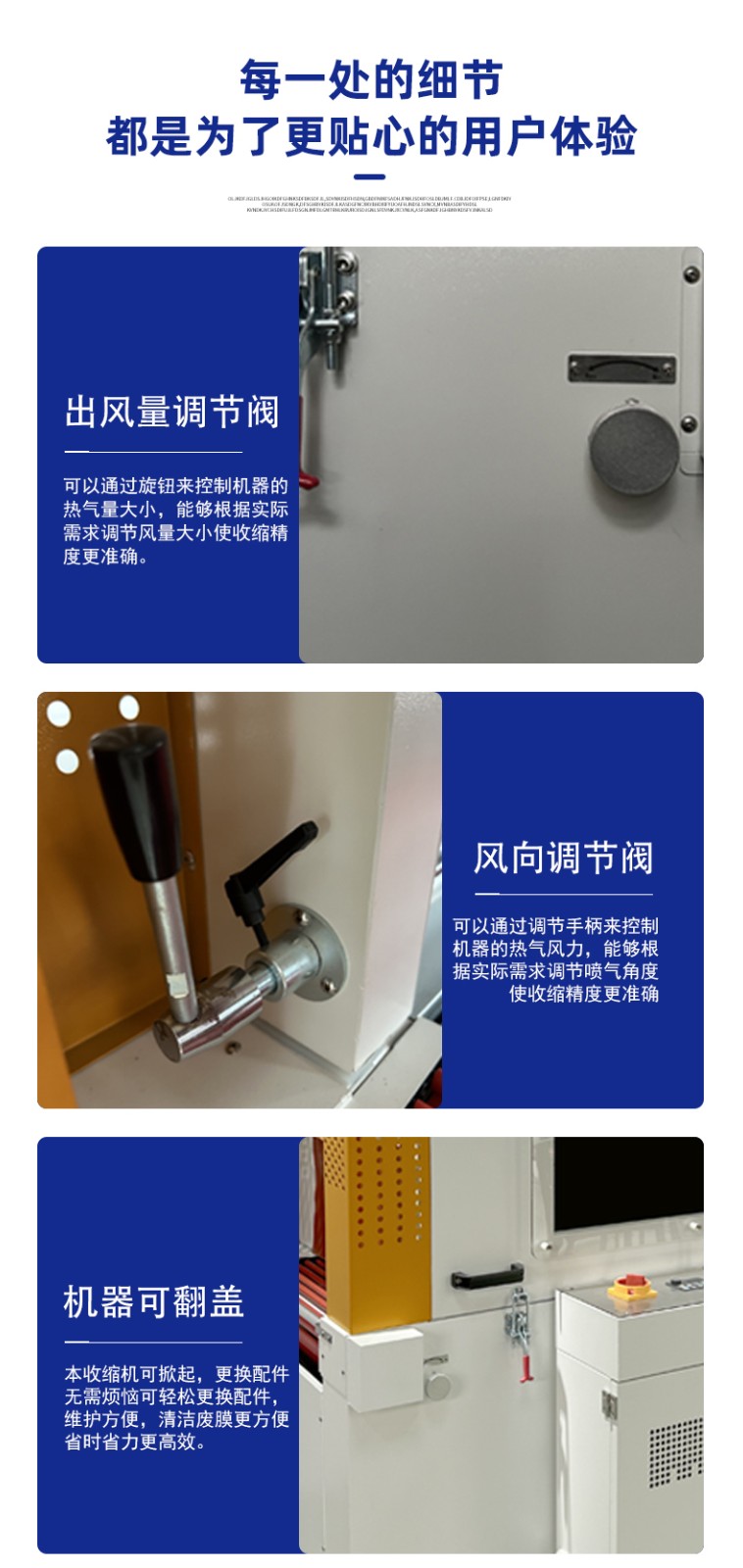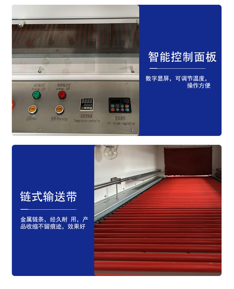 更易操作- 智能化控制:配備觸摸屏,可預設多組參數(如不同產品的封切位置、收縮溫度),切換產品時一鍵調用;