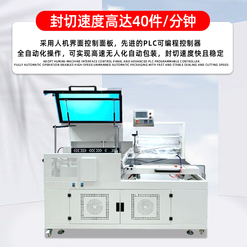 效率更高- 全自動流程:無需人工干預封切、送膜、收縮,單機產能可達 15-60 件 / 分鐘(根據產品尺寸調整),遠超半自動機型;