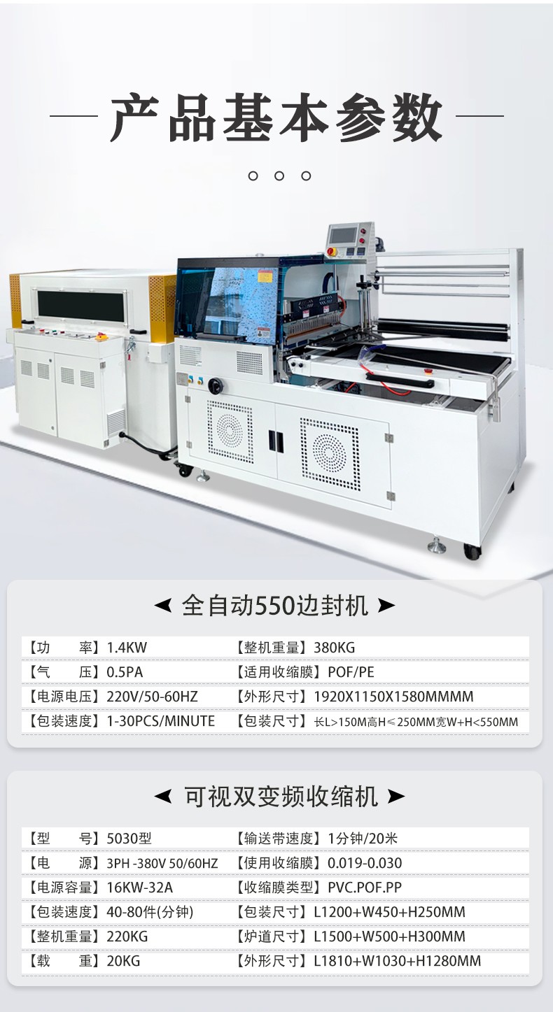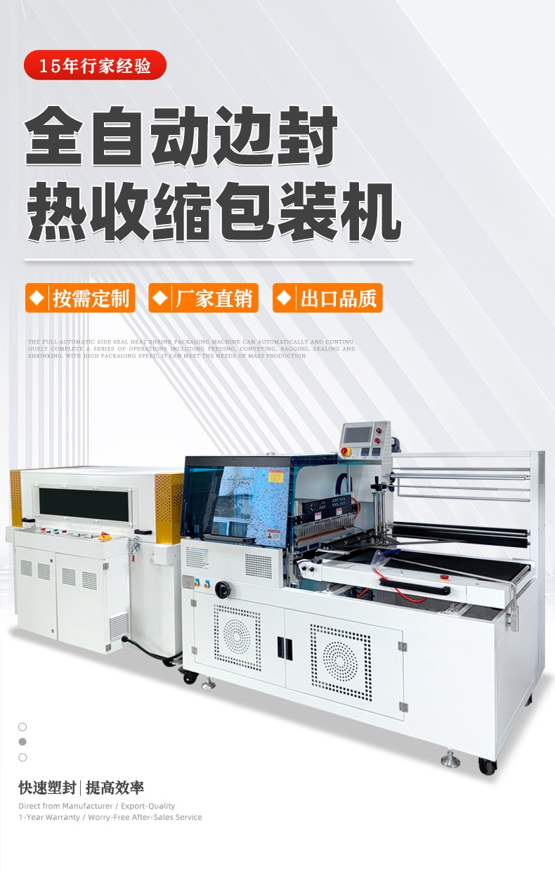 全自動邊封熱收縮機是一款通過自動化完成薄膜邊封與熱收縮,實現產品高效密封包裝的設備,核心特點是高自動化、包裝規整、適配范圍廣。 其工作流程可簡化為三步:先通過輸送系統用薄膜裹覆產品,再由恒溫封刀對薄膜側邊進行密封,最后經熱收縮通道使薄膜緊密貼合產品,全程無需人工干預關鍵環節。 設備適用于建材(鋁型材)、印刷(書刊)、電子(充電器)、食品(禮盒)等多行業,能包裝長條、扁平、塊狀等多種形態產品,標準機型每分鐘可包裝 30-60 件,可滿足大批量生產需求。