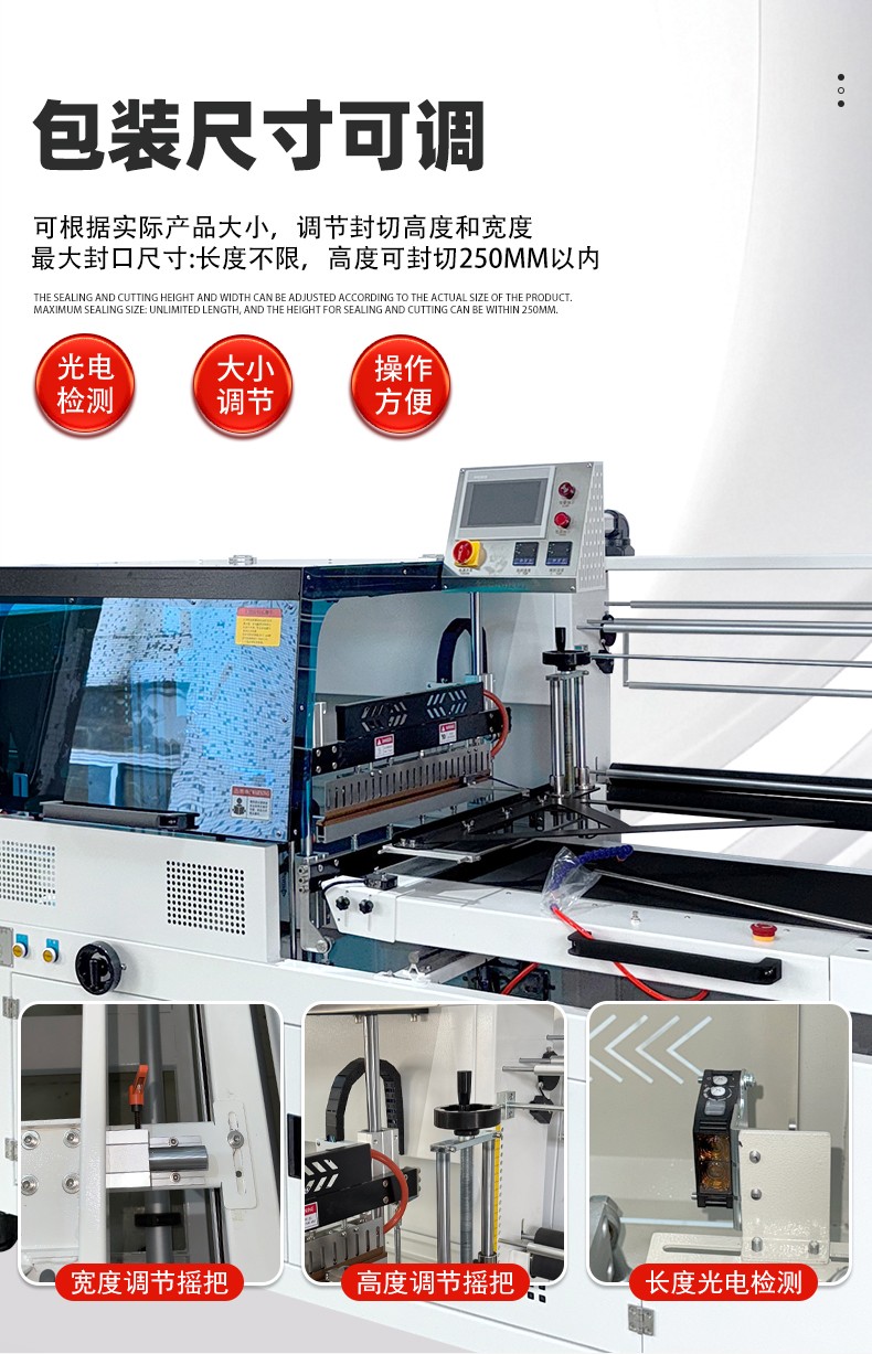 • 自動化程度高:采用 PLC 可編程控制器,配備光電感應裝置,可自動完成輸送、封口、熱收縮等全過程,還可與生產線連接,實現無人化生產。