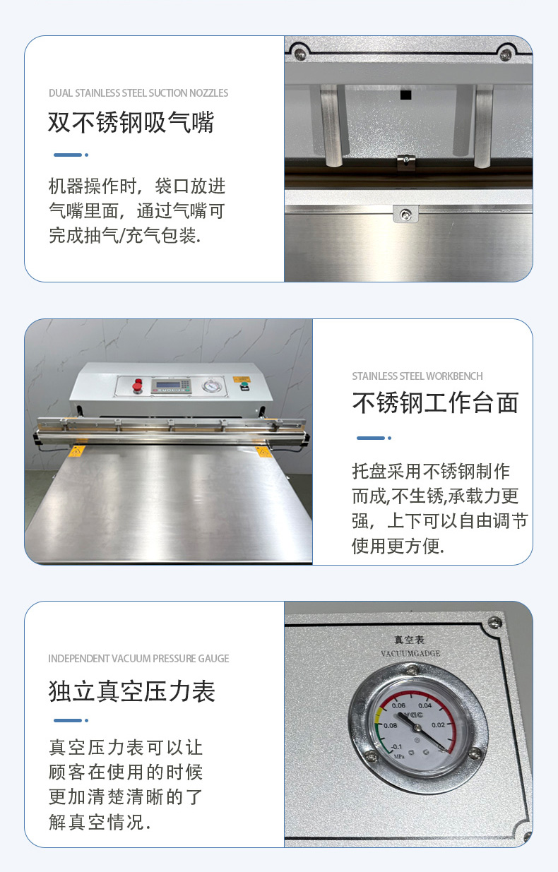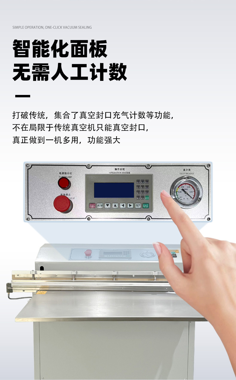 • 操作門檻低:無需頻繁調整腔體大小,只需定位袋口即可啟動,部分機型配備腳踏開關,單人即可高效操作。