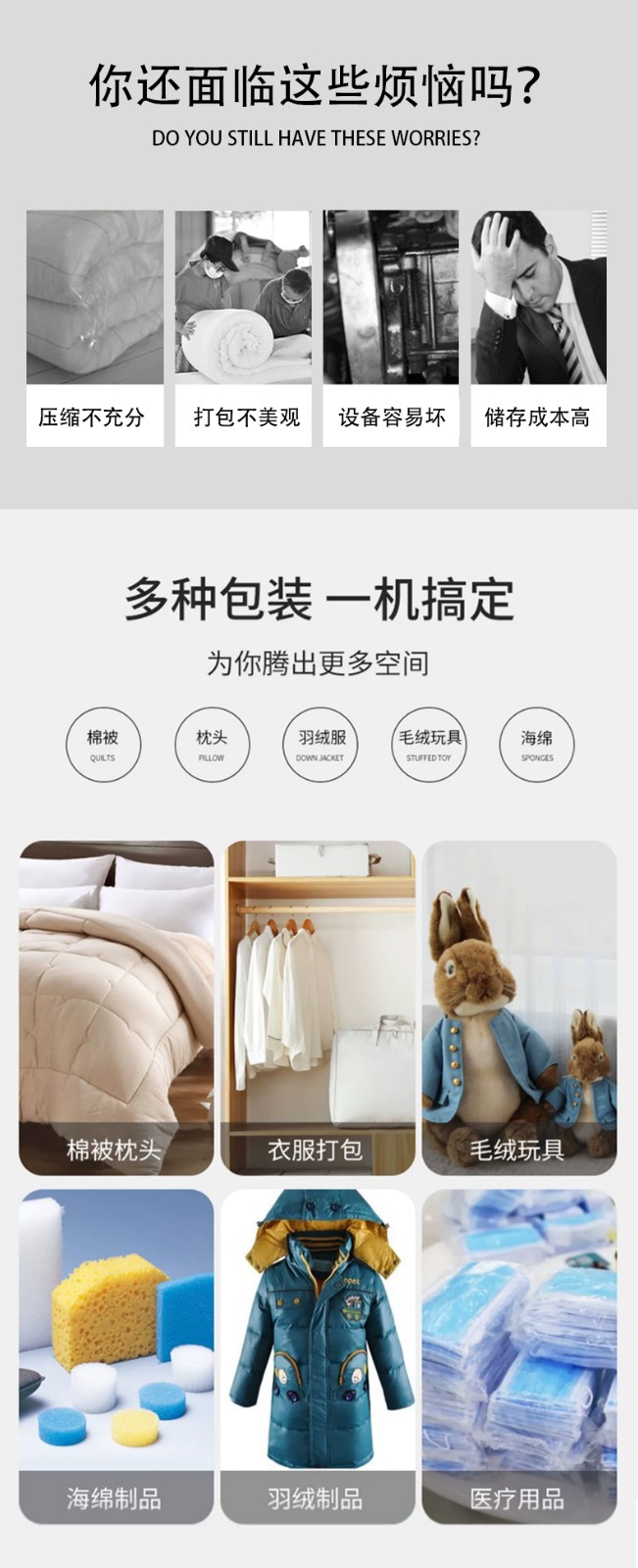 商用氣動壓縮包裝機棉被抱枕毛毯封口機 防護服羽絨服真空打包機