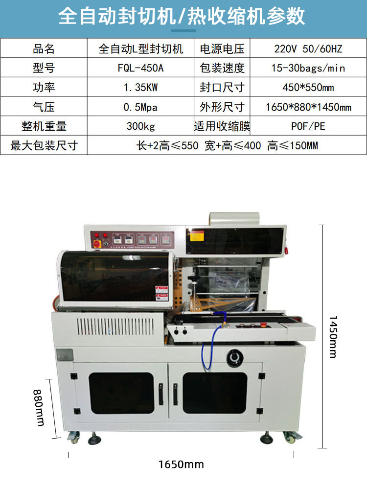 450L全自動封切機 熱收縮包裝機自動套膜機 自動包膜機 熱收縮機全自動L型封切機暢銷