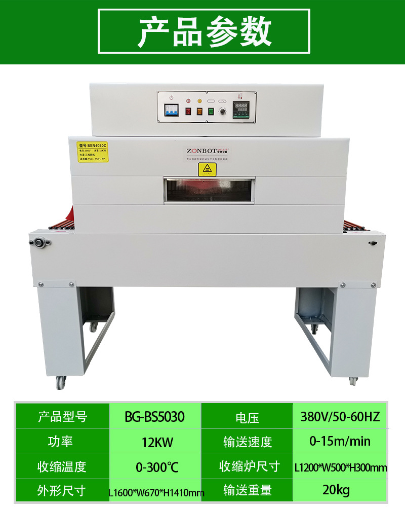 PRODUCT CENTER熱收縮機(jī)的工作原理很簡(jiǎn)單,首先需要將物品放入機(jī)器內(nèi)部,然后調(diào)整好收縮溫度、收縮時(shí)間和速度等參數(shù),接下來(lái)就讓機(jī)器自動(dòng)為你搞定一切吧!經(jīng)過(guò)收縮處理的物品不僅外觀更加美觀,而且可以提高物品的耐壓、耐磨性能,延長(zhǎng)物品的使用壽命。首先,在操作熱收縮機(jī)之前,一定要確保機(jī)器的電源已經(jīng)插好,并且完好無(wú)損。其次,物品放入收縮機(jī)內(nèi)部時(shí),要確保物品表面干凈,沒(méi)有油污等雜物,以免影響收縮效果。此外,收縮機(jī)的溫度不要調(diào)得太高,以免損壞機(jī)器。最后,注意收縮過(guò)程中不要拉動(dòng)物品,以免導(dǎo)致物品變形。