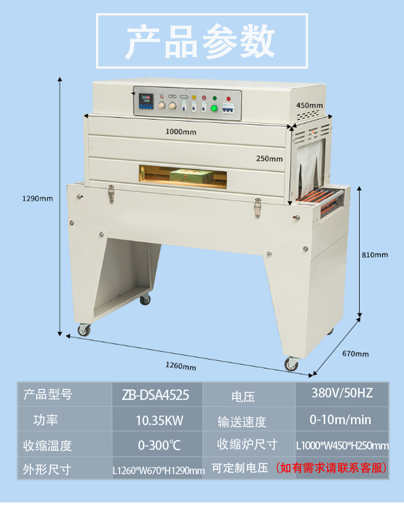 熱收縮機,是一種用于包裝各種物品的現代化設備。通過將包裝薄膜加熱并包裹在產品上,使其迅速收縮,不僅能有效防止產品在運輸、儲存過程中免受潮濕、跌落等外部因素的侵害,還能大大提升產品的包裝美觀度,提高銷售額。