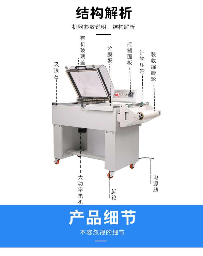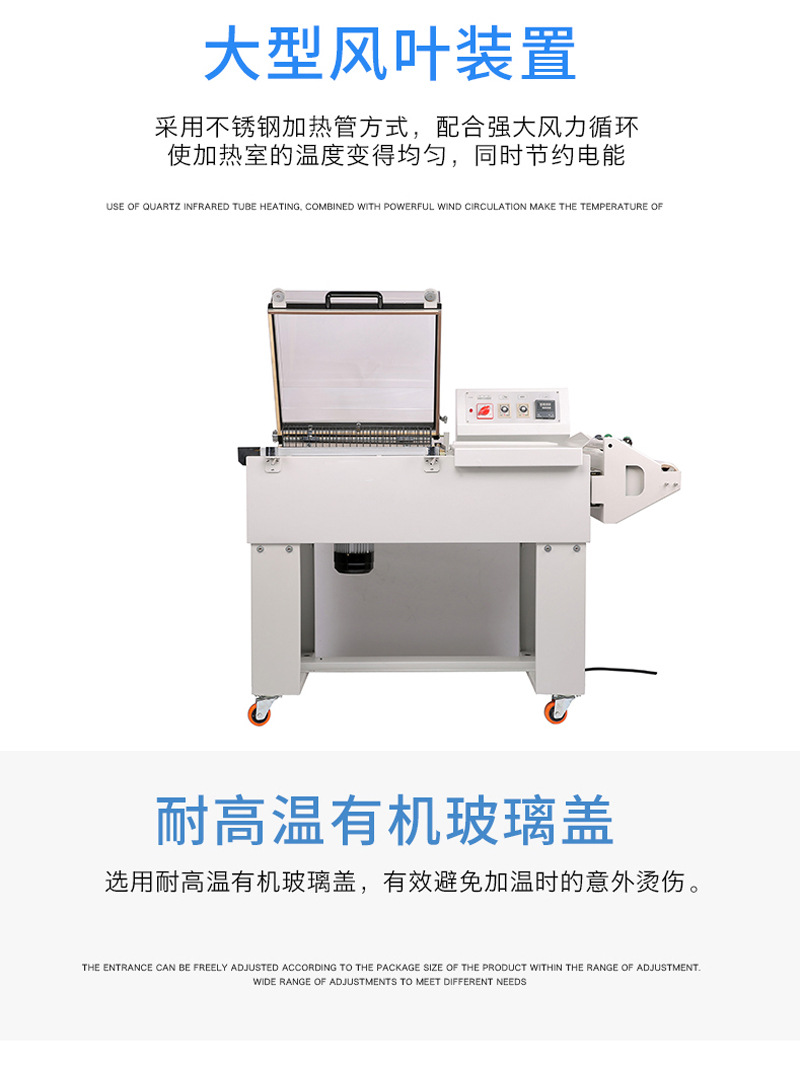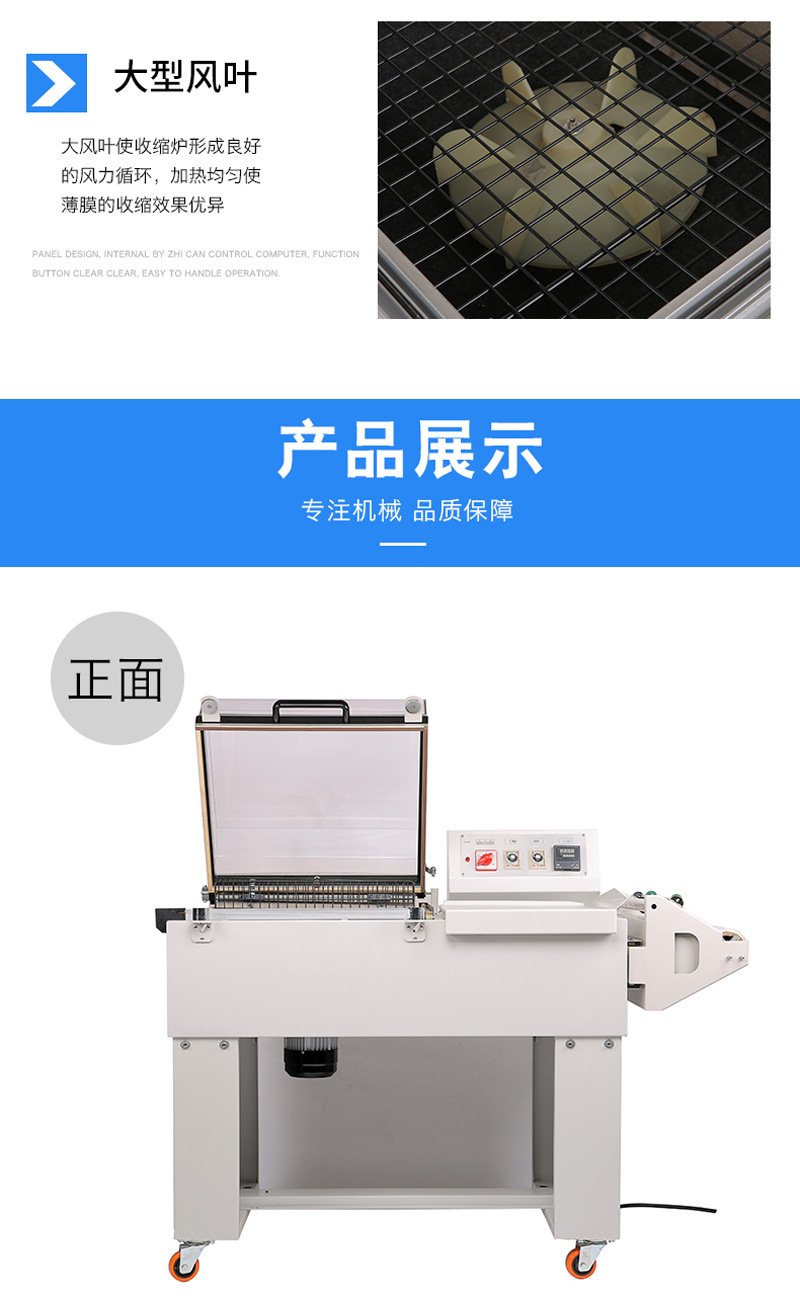 PRODUCT CENTER收縮機(jī)除了可以用于包裝物品外,還可以用于其他領(lǐng)域,如醫(yī)療、化工、電子等。隨著科技的不斷進(jìn)步,熱收縮機(jī)也在不斷創(chuàng)新和發(fā)展,未來的熱收縮機(jī)將會更加智能化、高效化,為我們的生活帶來更多的便利和福利。