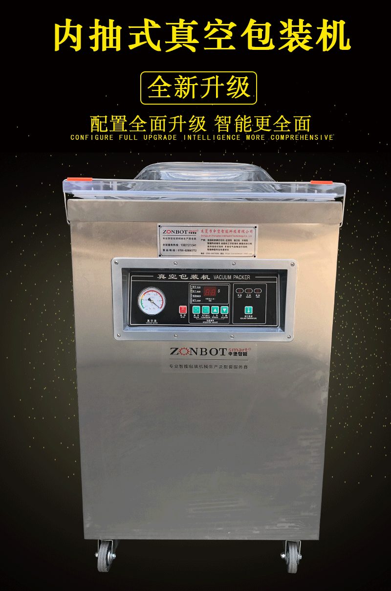 真空包裝機包括食品真空包裝機都是由真空系統、抽充氣密封系統、熱壓封合系統、電器控制系統等組成。外抽式真空包裝機是將包裝袋內抽成低真空后,當即自動封口,由于袋內真空度高,殘留空氣極少,抑制細菌等微生物的繁殖,避免了物品氧化、霉變和