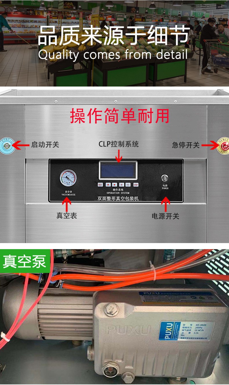 首先,我們要將食品放入包裝袋中,然后將包裝袋放入真空包裝機的工作臺上。接著,按下真空包裝機的開關,機器開始對食品進行抽真空,經過一定時間后,機器自動封口,完成整個包裝過程。
