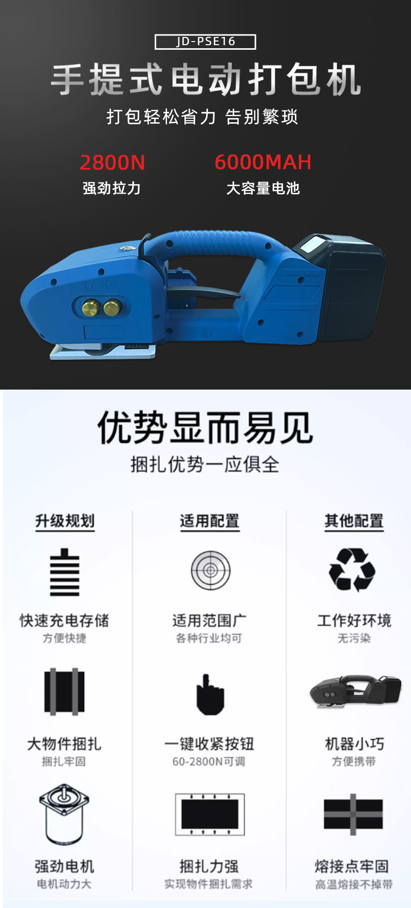 手提式電動(dòng)打包機(jī)PET塑鋼帶PP帶自動(dòng)捆扎拉緊免扣熱熔廠家直銷(xiāo)
