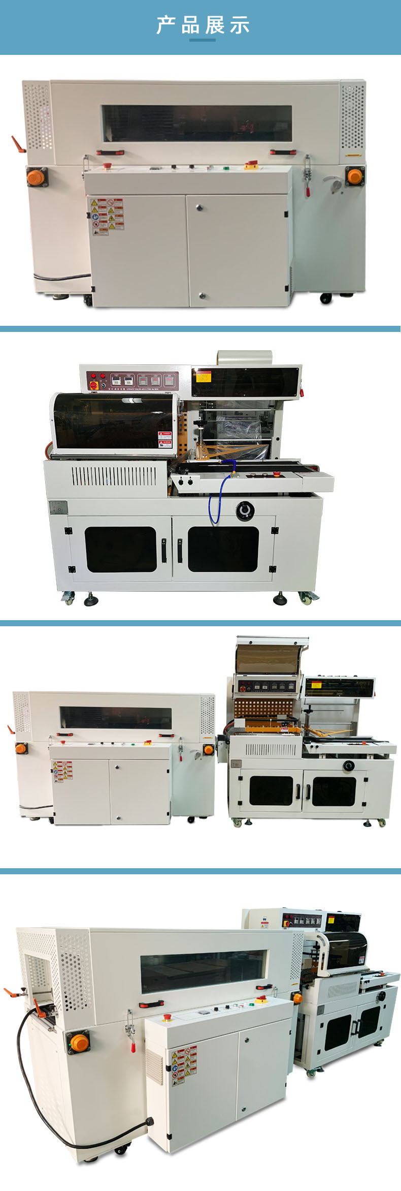 適用于軟件、食品、化妝品、印刷、制藥、地板、陶瓷、飲料、五金、塑料制品等行業的特大批量收縮包裝。適用于OPP、POF、PE、PVC等各種收縮包裝材料。