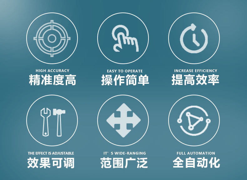 工作效率高,適用于大批量生產的行業。*的設計理念,使設備的調整和參數設定更簡單科學,達到操作控制