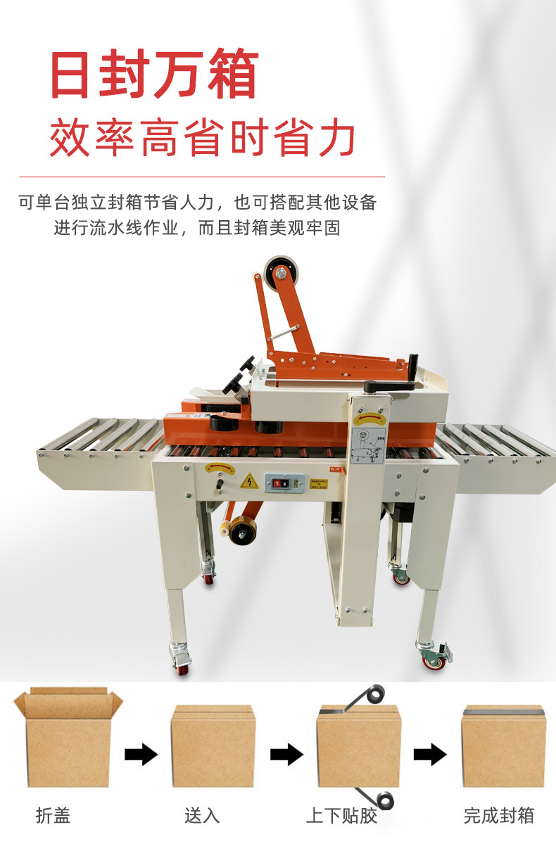 封箱機,也稱為Case sealer machine,主要用于紙箱的封箱包裝。它們不僅適用于單機作業(yè),也可以與流水線配套使用,是包裝流水線作業(yè)中不可或缺的設(shè)備。封箱機的功能包括自動折疊、粘合和封口紙箱,通過先進的感應(yīng)和控制技術(shù),能夠自動檢測和調(diào)整紙箱尺寸,按照設(shè)計要求進行折疊和封口操作,大大提高了包裝的效率和一致性,減少了人工操作的錯誤和勞動強度。
