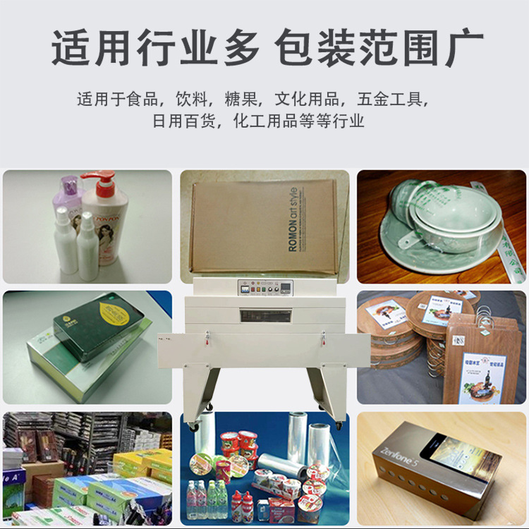 熱收縮機被廣泛應用于玻璃瓶、發(fā)泡膠、紙盒、玩具、電子、電器、文具、圖書、唱片、五金工具、日用品、藥品、化妝品、飲料、水果、紀念標簽等物品包裝。